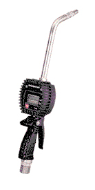 Oval gear hose end meter with digital display for measured delivery of lubricants up to SAE 140. Meter is flange coupled to a durable but lightweight oil control gun that incorporates a ruged ball bearing inlet swivel with an inlet filter